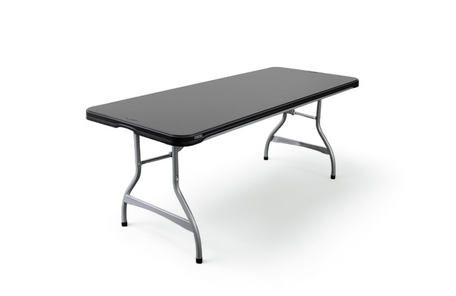 Les tables sont en PVC et mesurent 180×75 cm.