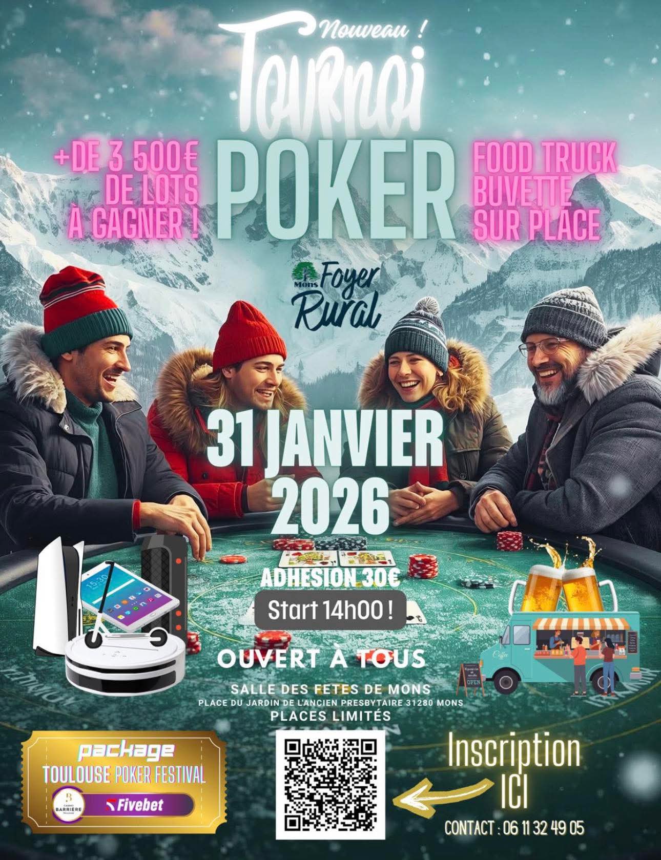 Le Foyer rural propose un tournoi de Poker le 31 janvier 2026.
